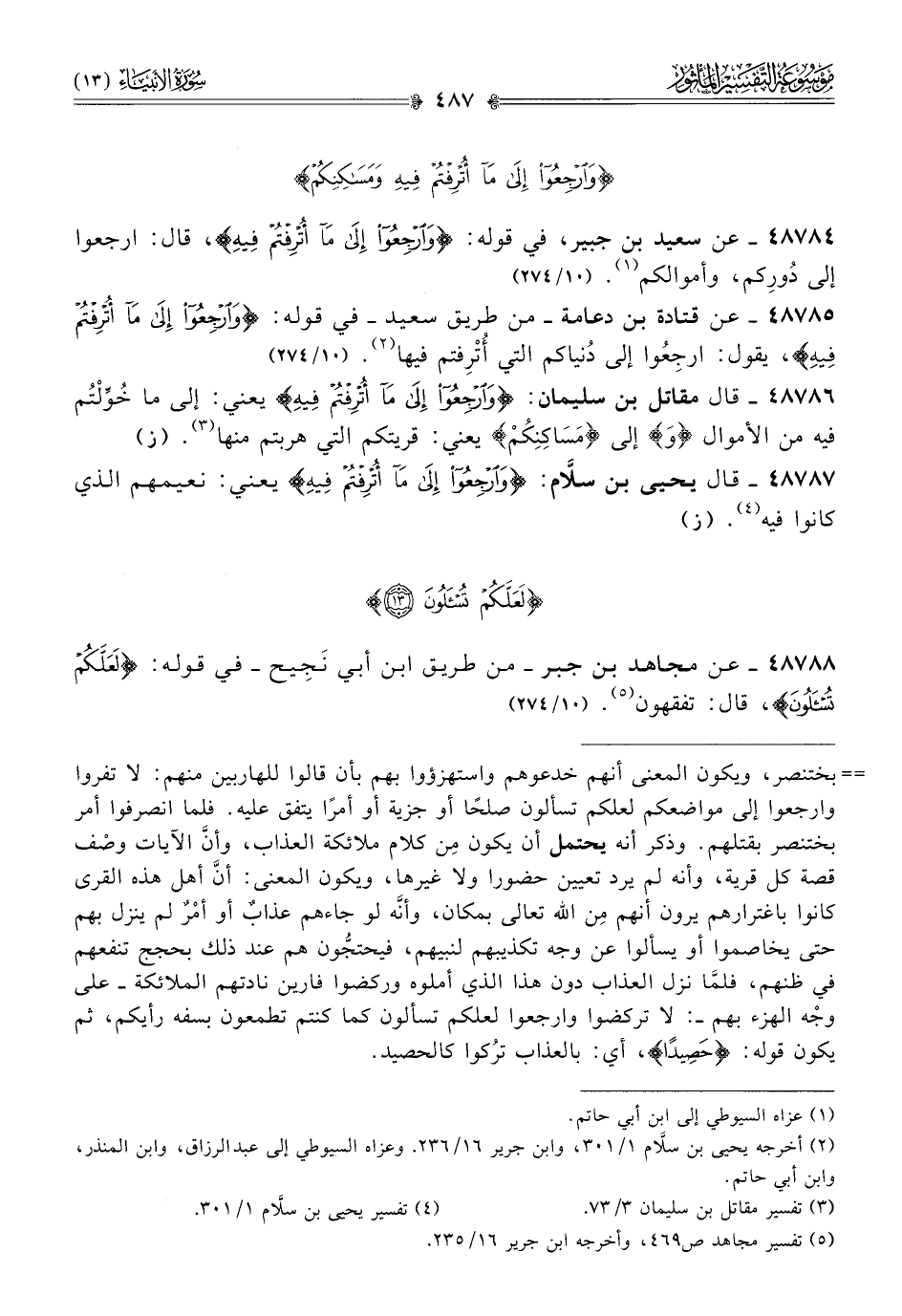 ٤٨٧٨٤ - عن سعيد بن جبير، في قوله: {وارجعوا إلى ما أترفتم فيه}، قال: ارجعوا إلى دُورِكم، وأموالكم (¬١). (١٠/ ٢٧٤)