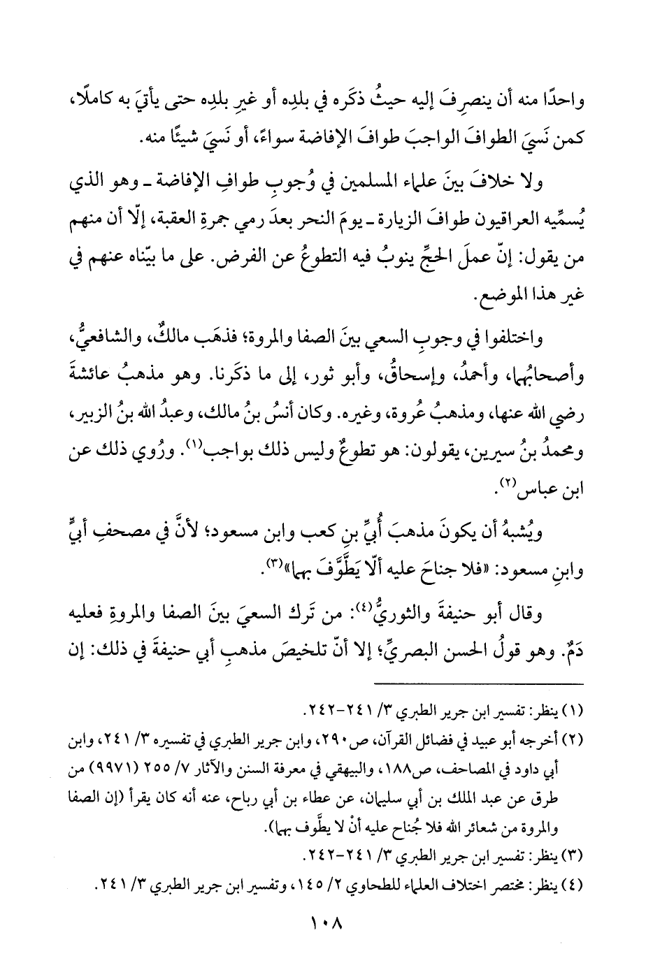 ويُشبهُ أن يكونَ مذهبَ أُبيِّ بنِ كعب وابن مسعود؛ لأنَّ في مصحفِ أبيٍّ وابنِ مسعود: "فلا جناحَ عليه ألّا يَطَّوَّفَ بهما" (¬٣).