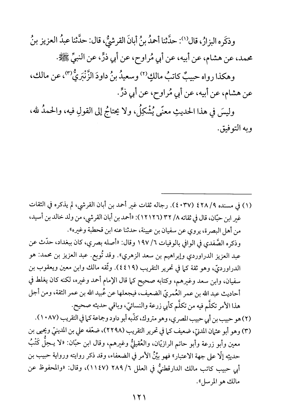 وهكذا رواه حبيبٌ كاتبُ مالكٍ (¬٢) وسعيدُ بنُ داودَ الزَّنْبَريُّ (¬٣)، عن مالك، عن هشام، عن أبيه، عن أبي مُراوح، عن أبي ذرٍّ.