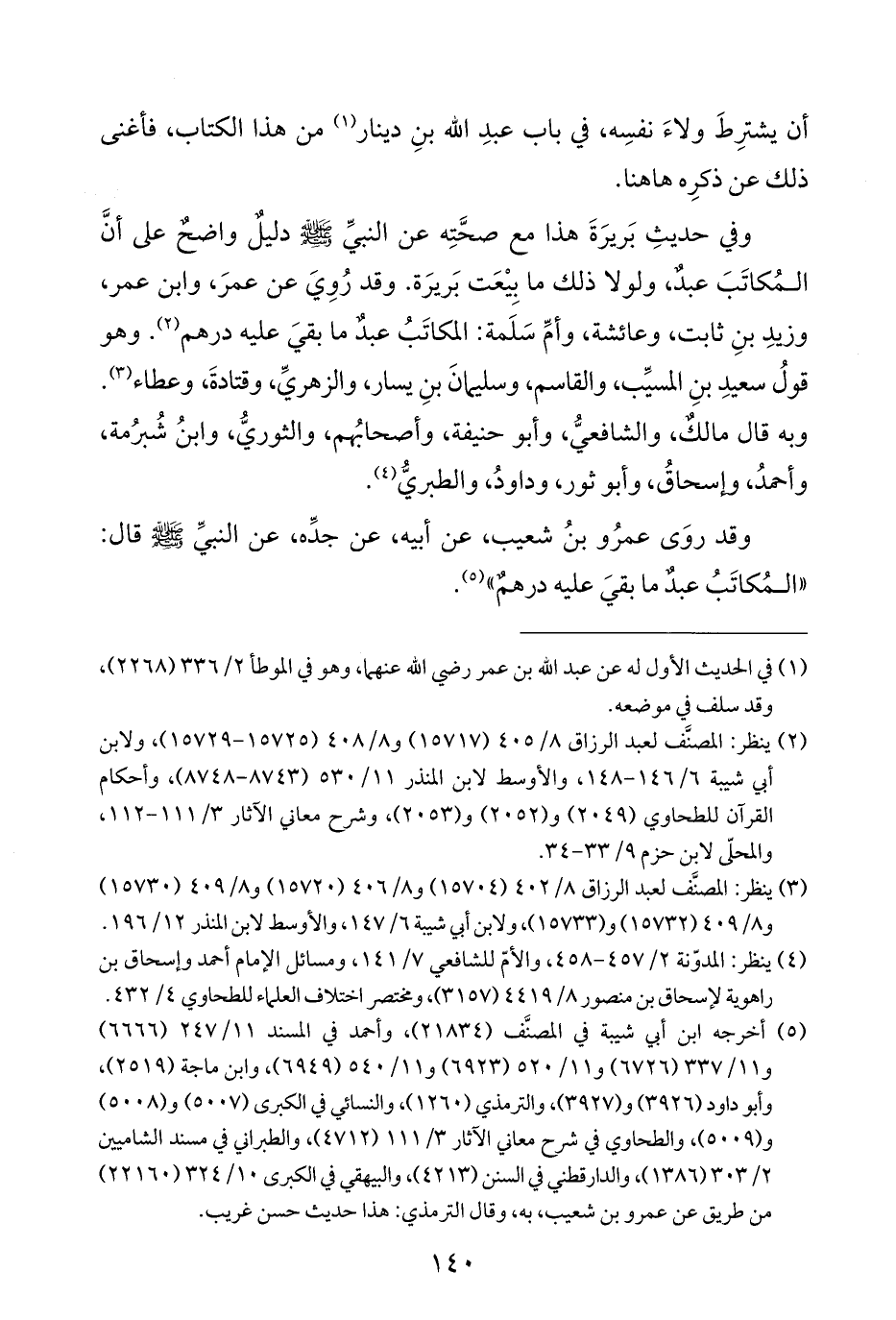 (¬٥) أخرجه ابن أبي شيبة في المصنَّف (٢١٨٣٤)، وأحمد في المسند ١/ ٢٤٧١ (٦٦٦٦) و ١١/ ٣٣٧ (٦٧٢٦) و ١١/ ٥٢٠ (٦٩٢٣) و ١١/ ٥٤٠ (٦٩٤٩)، وابن ماجة (٢٥١٩)، وأبو داود (٣٩٢٦) و (٣٩٢٧)، والترمذي (١٢٦٠)، والنسائي في الكبرى (٥٠٠٧) و (٥٠٠٨) و (٥٠٠٩)، والطحاوي في شرح معاني الآثار ٣/ ١١١ (٤٧١٢)، والطبراني في مسند الشاميين ٢/ ٣٠٣ (١٣٨٦)، والدارقطني في السنن (٤٢١٣)، والبيهقي في الكبرى ١٠/ ٣٢٤ (٢٢١٦٠) من طريق عن عمرو بن شعيب، به، وقال الترمذي: هذا حديث حسن غريب.