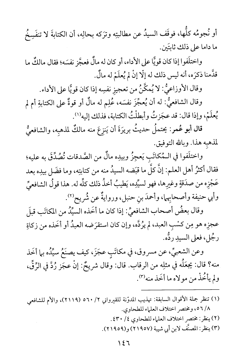 أو نُجومُه كلُّها، فوقَف السيدُ عن مطالبتِه وترَكه بحالِه، أن الكتابةَ لا تنفَسِخُ ما داما على ذلك ثابتَين.