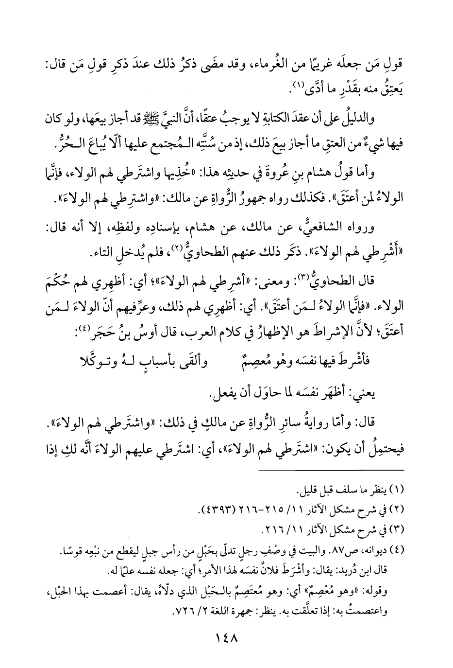 قال الطحاويُّ (¬٣): ومعنى: "أشرِطي لهم الولاءَ"؛ أي: أظهِري لهم حُكْمَ الولاء. "فإنَّما الولاءُ لمَن أعتَقَ". أي: أظهرِي لهم ذلك، وعرِّفيهم أنّ الولاءَ لمَن أعتَقَ؟ لأنَّ الإشراطَ هو الإظهارُ في كلام العرب، قال أوسُ بنُ حَجَر (¬٤):