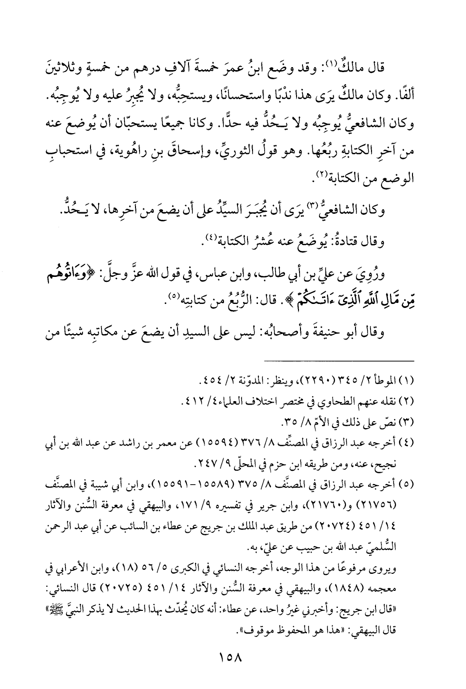 ورُوِيَ عن عليِّ بن أبي طالب، وابن عباس، في قول الله عزَّ وجلَّ: {وَآتُوهُمْ مِنْ مَالِ اللَّهِ الَّذِي آتَاكُمْ}. قال: الرُّبُعُ من كتابتِه (¬٥).