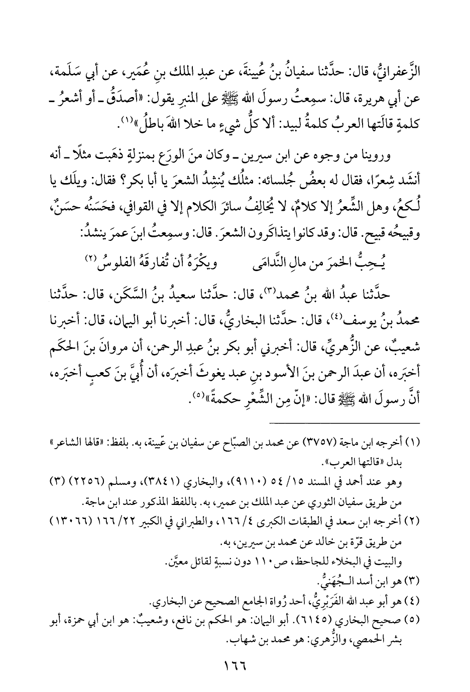 حدَّثنا عبدُ الله بنُ محمد (¬٣)، قال: حدَّثنا سعيدُ بنُ السَّكَن، قال: حدَّثنا محمدُ بنُ يوسف (¬٤)، قال: حدَّثنا البخاريُّ، قال: أخبر نا أبو اليمان، قال: أخبرنا شعيبٌ، عن الزُّهريِّ، قال: أخبرني أبو بكر بنُ عبدِ الرحمن، أن مروانَ بنَ الحكَم أخبَره، أن عبدَ الرحمن بنَ الأسود بنِ عبد يغوثَ أخبرَه، أن أُبيَّ بنَ كعبِ أخبَره، أنَّ رسولَ الله - صلى الله عليه وسلم - قال: "إنّ مِن الشِّعْرِ حكمةً" (¬٥).