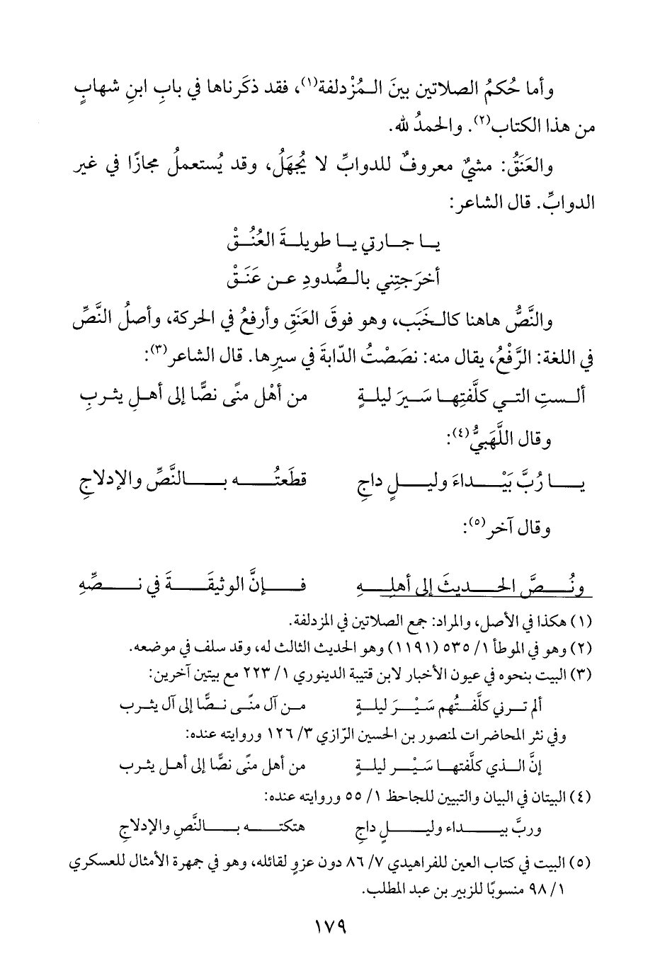 والنَّصُّ هاهنا كالخَبَب، وهو فوقَ العَنَقِ وأرفعُ في الحركة، وأصلُ النَّصِّ في اللغة: الرَّفْعُ، يقال منه: نصَصْتُ الدّابةَ في سيرِها. قال الشاعر (¬٣):
