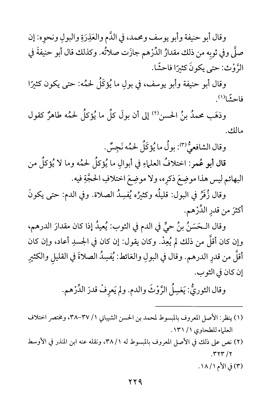 (¬٢) نص على ذلك في الأصل المعروف بالمبسوط له ١/ ٣٨، ونقله عنه ابن المنذر في الأوسط ٢/ ٣٢٣.