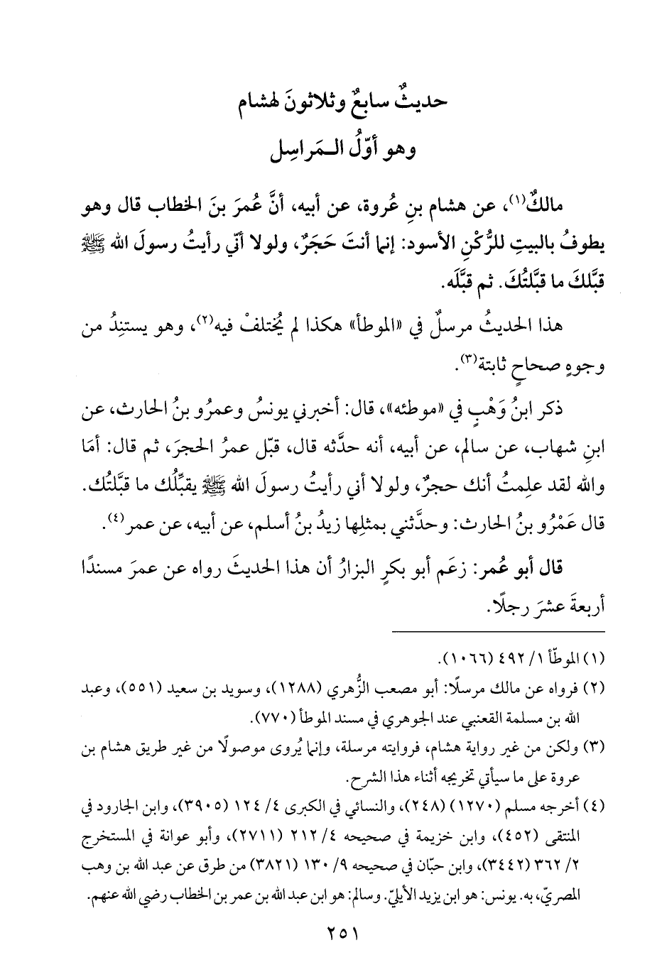 حديثٌ سابعٌ وثلاثونَ لهشام وهو أوّلُ المَراسِل