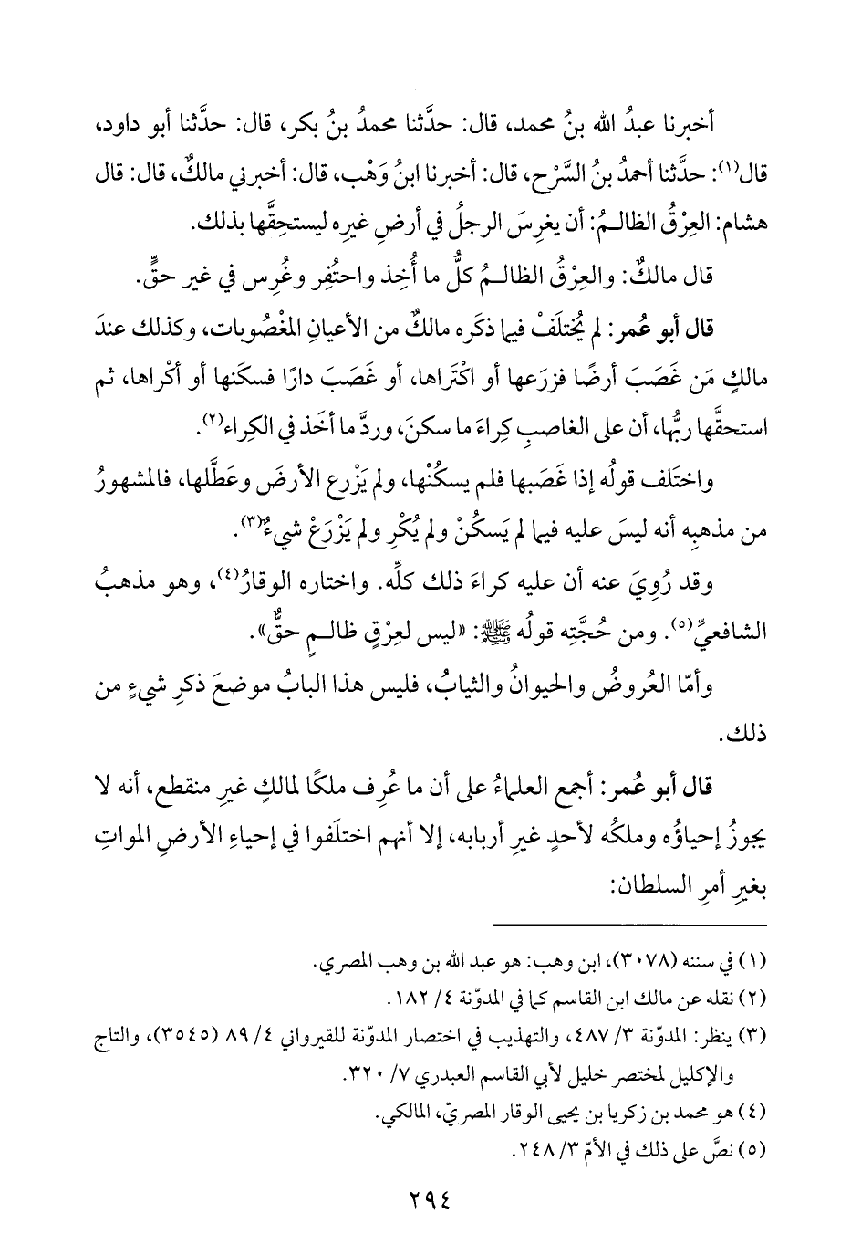 أخبرنا عبدُ الله بنُ محمد، قال: حدَّثنا محمدُ بنُ بكر، قال: حدَّثنا أبو داود، قال (¬١): حدَّثنا أحمدُ بنُ السَّرْح، قال: أخبرنا ابنُ وَهْب، قال: أخبرني مالكٌ، قال: قال هشام: العِرْقُ الظالمُ: أن يغرِسَ الرجلُ في أرضِ غيرِه ليستحِقَّها بذلك.