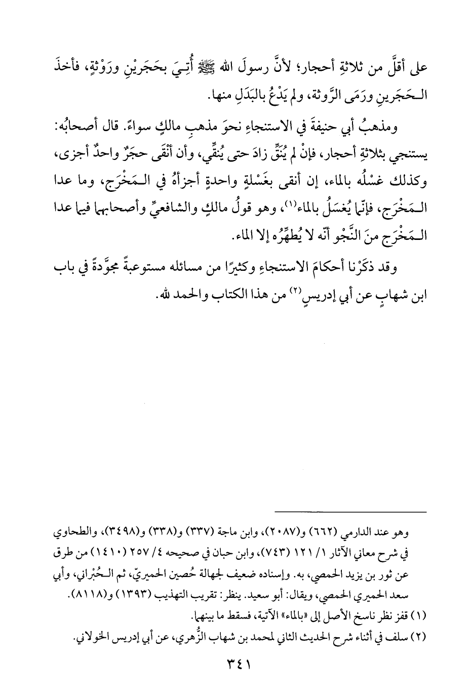 وقد ذكَرْنا أحكامَ الاستنجاءِ وكثيرًا من مسائله مستوعبةً مجوَّدةً في باب ابن شهابٍ عن أبي إدريسٍ (¬٢) من هذا الكتاب والحمد لله.