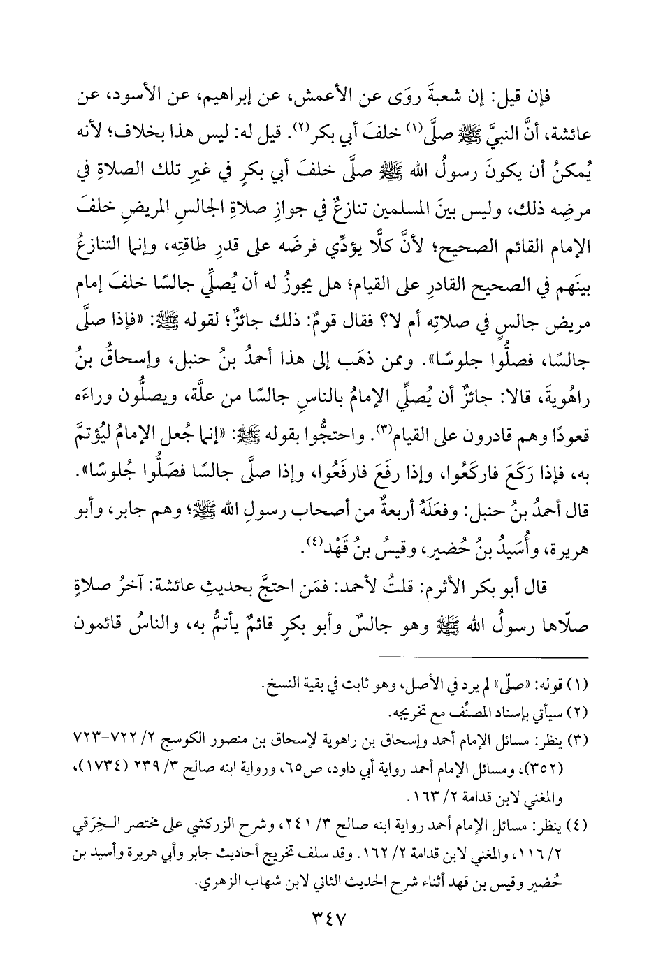 (¬٣) ينظر: مسائل الإمام أحمد وإسحاق بن راهوية لإسحاق بن منصور الكوسج ٢/ ٧٢٢ - ٧٢٣ (٣٥٢)، ومسائل الإمام أحمد رواية أبي داود، ص ٦٥، ورواية ابنه صالح ٣/ ٢٣٩ (١٧٣٤)، والمغني لابن قدامة ٢/ ١٦٣.