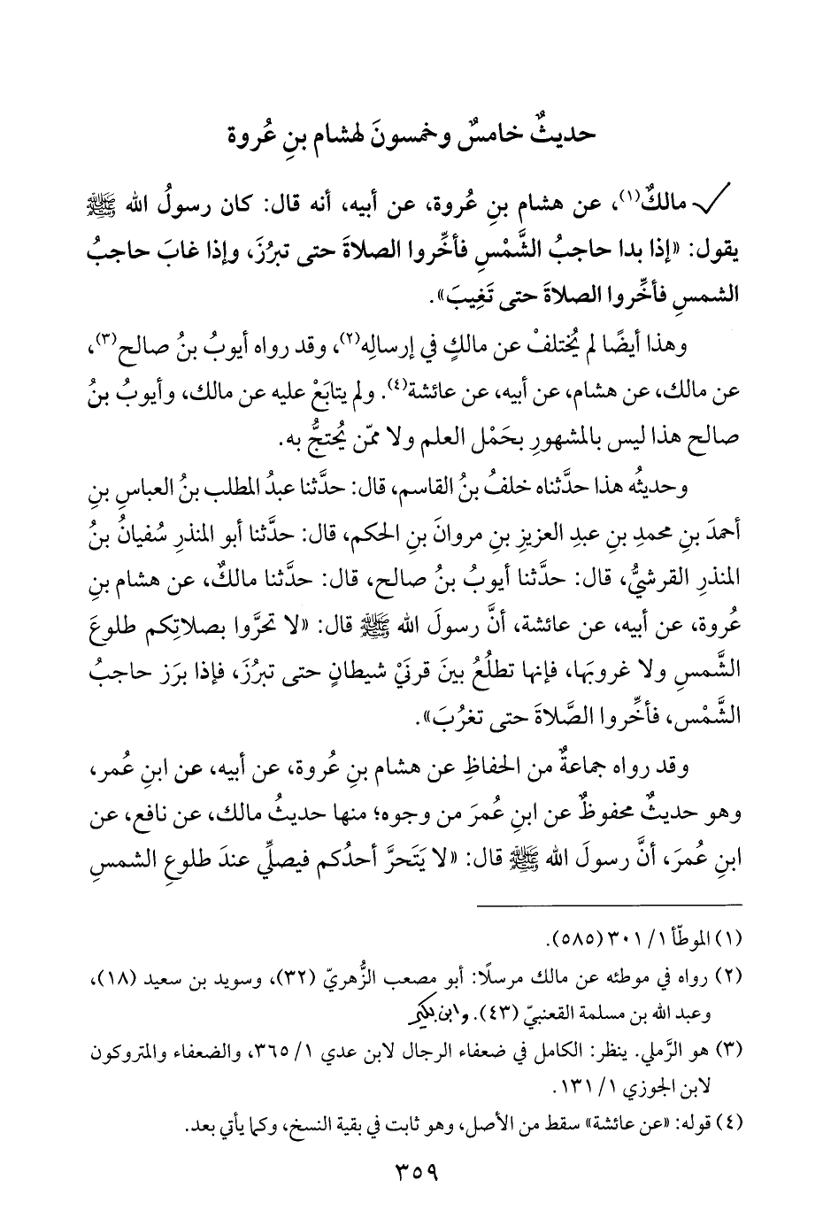 (¬١) الموطّأ ١/ ٣٠١ (٥٨٥).