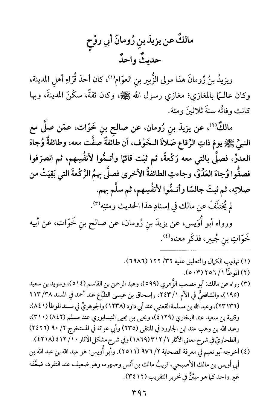 مالكٌ عن يزيدَ بنِ رُومانَ أبي روْحٍ حديثٌ واحدٌ