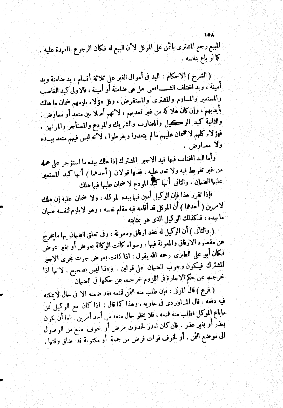 أن الموكل قد أقامه فيه مقام نفسه، وهو لا يلزم لنفسه ضمان ما بيده، فكذلك الوكيل الذى هو بمثابته