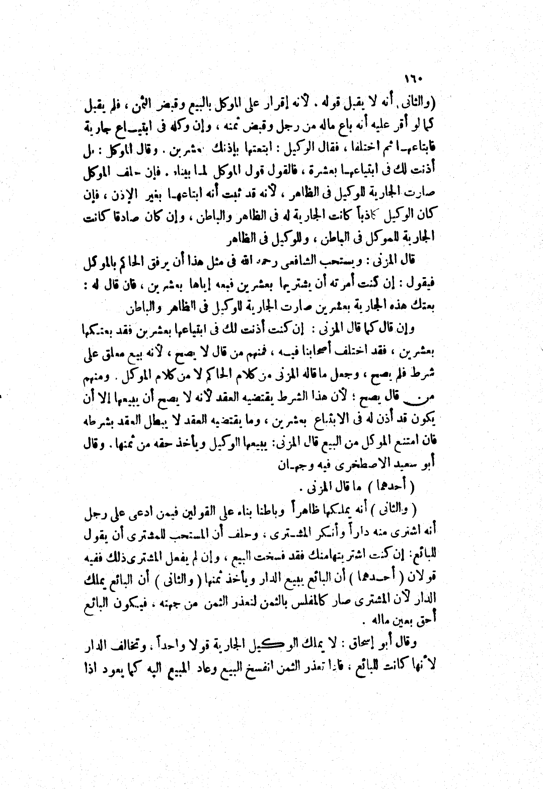 أنه لا يقبل قوله، لانه إقرار على الموكل بالبيع وقبض الثمن، فلم يقبل كما لو أقر عليه أنه باع ماله من رجل وقبض ثمنه، وإن وكله في ابتياع جارية فابتاعها ثم اختلفا، فقال الوكيل: ابتعتها بإذنك بعشرين.