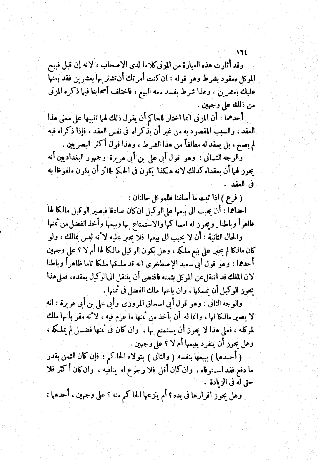 وقد أثارت هذه العبارة من المزني كلاما لدى الاصحاب، لانه إن قبل فبيع الموكل معقود بشرط وهو قوله: ان كنت أمرتك أن تشتريها بعشرين فقد بعتها