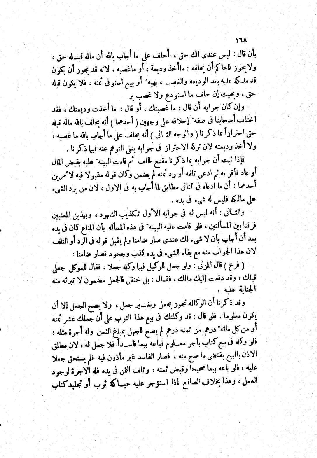 والثانى: أنه ليس له في جوابه الاول تكذيب الشهود، وبهذين المعنيين فرقنا بين المسألتين، فلو قامت عليه البينة في هذه المسأله بأن المتاع كان في يده بعد أن أجاب بأن لا شئ لك عندي صار ضامنا ولم يقبل قوله في الرد أو التلف لان هذا الجواب منه مع بقاء الشئ في يده كذب وجحود فصار ضامنا: (فرع)