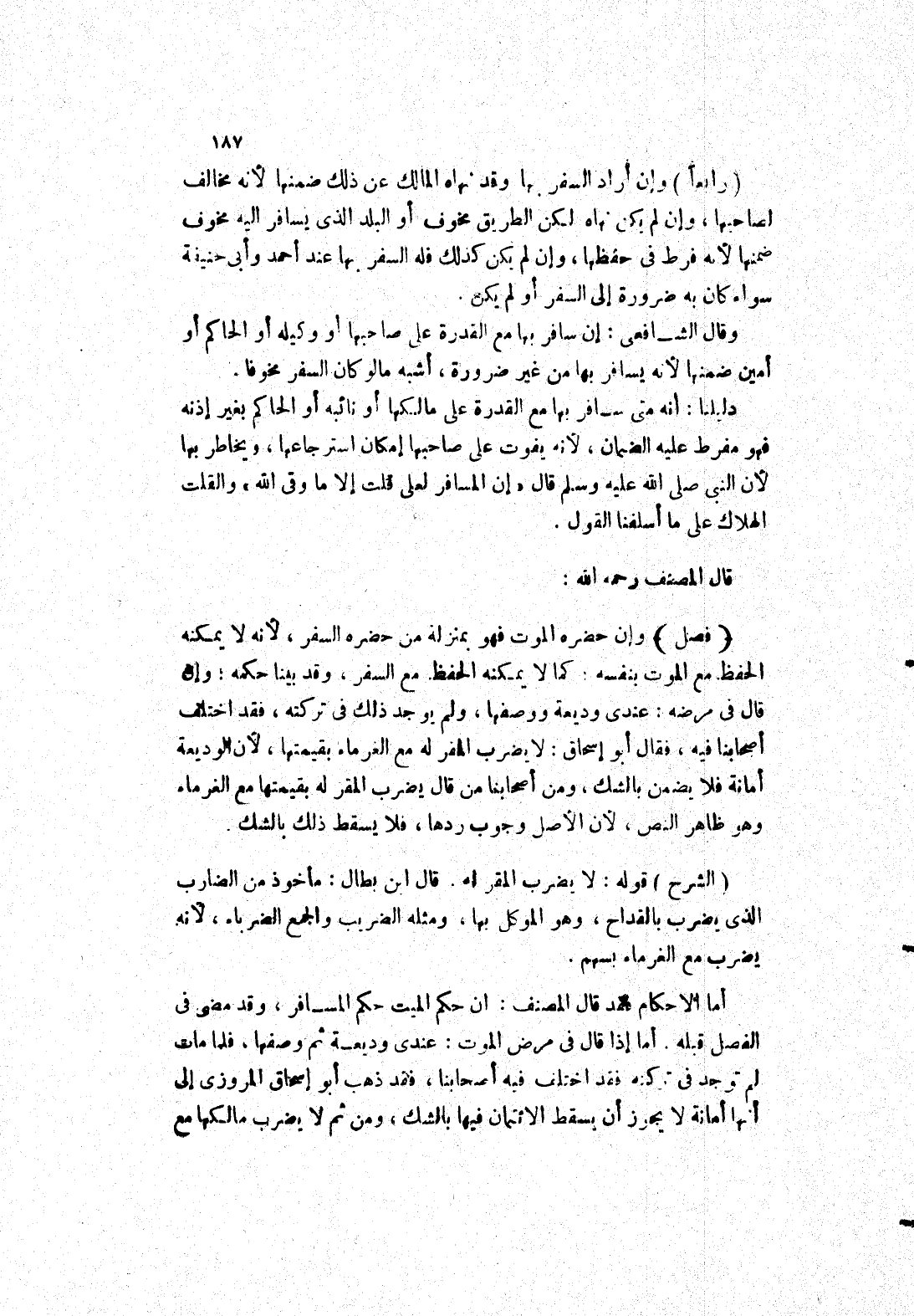 (رابعا) وإن أراد السفر بها وقد نهاه المالك عن ذلك ضمنها لانه مخالف لصاحبها، وإن لم يكن نهاه لكن الطريق مخوف أو البلد الذى يسافر إليه مخوف ضمنها لانه فرط في حفظها، وإن لم يكن كذلك فله السفر بها عند أحمد وأبى حنيفة سواء كان به ضرورة إلى السفر أو لم يكن.