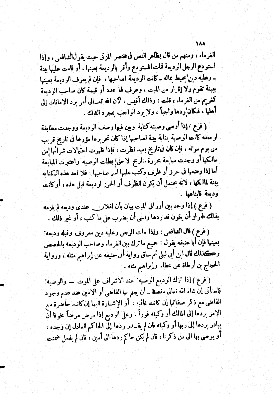 الغرماء، ومنهم من قال بظاهر النص في مختصر المزني حيث يقول الشافعي " وإذا استودع الرجل الوديعة فمات المستودع وأقر بالوديعة بعينها، أو قامت عليها بينة - وعليه دين يحيط بماله - كانت الوديعة لصاحبها، فإن لم يعرف الوديعة بعينها ببينة تقوم ولا إقرار من الميت، وعرف لها عدد أو قيمة كان صاحب الوديعة كغريم من الغرماء " قلت: وذلك أقيس، لان الله تعالى أمر برد الامانات إلى أهلها، فكان ردها واجبا، ولا يرد الواجب بمجرد الشك.