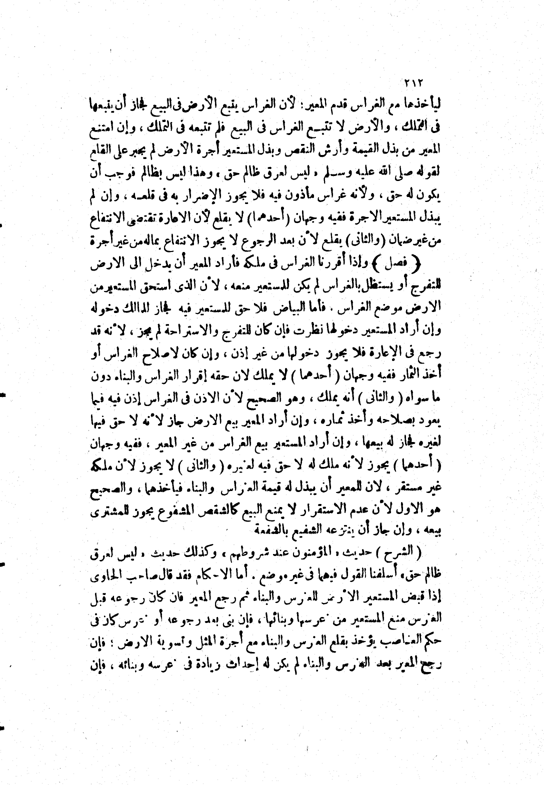 لا يجوز لان ملكه غير مستقر، لان للمعير أن يبذل له قيمة الغراس والبناء فيأخذهما، والصحيح هو الاول لان عدم الاستقرار لا يمنع البيع كالشقص المشفوع يجوز للمشترى بيعه، وإن جاز أن ينتزعه الشفيع بالشفعة (الشرح) حديث " المؤمنون عند شروطهم " وكذلك حديث " ليس لعرق ظالم حق " أسلفنا القول فيهما في غير موضع.