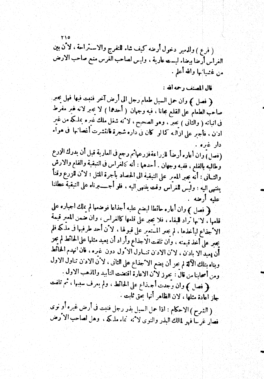 (الشرح) الاحكام: إذا حمل السيل بذر رجل فنبت في أرض غيره أو نوى فصار غرسا فهو لمالك البذر والنوى لانه نماء ملكه، وهل لصاحب الارض