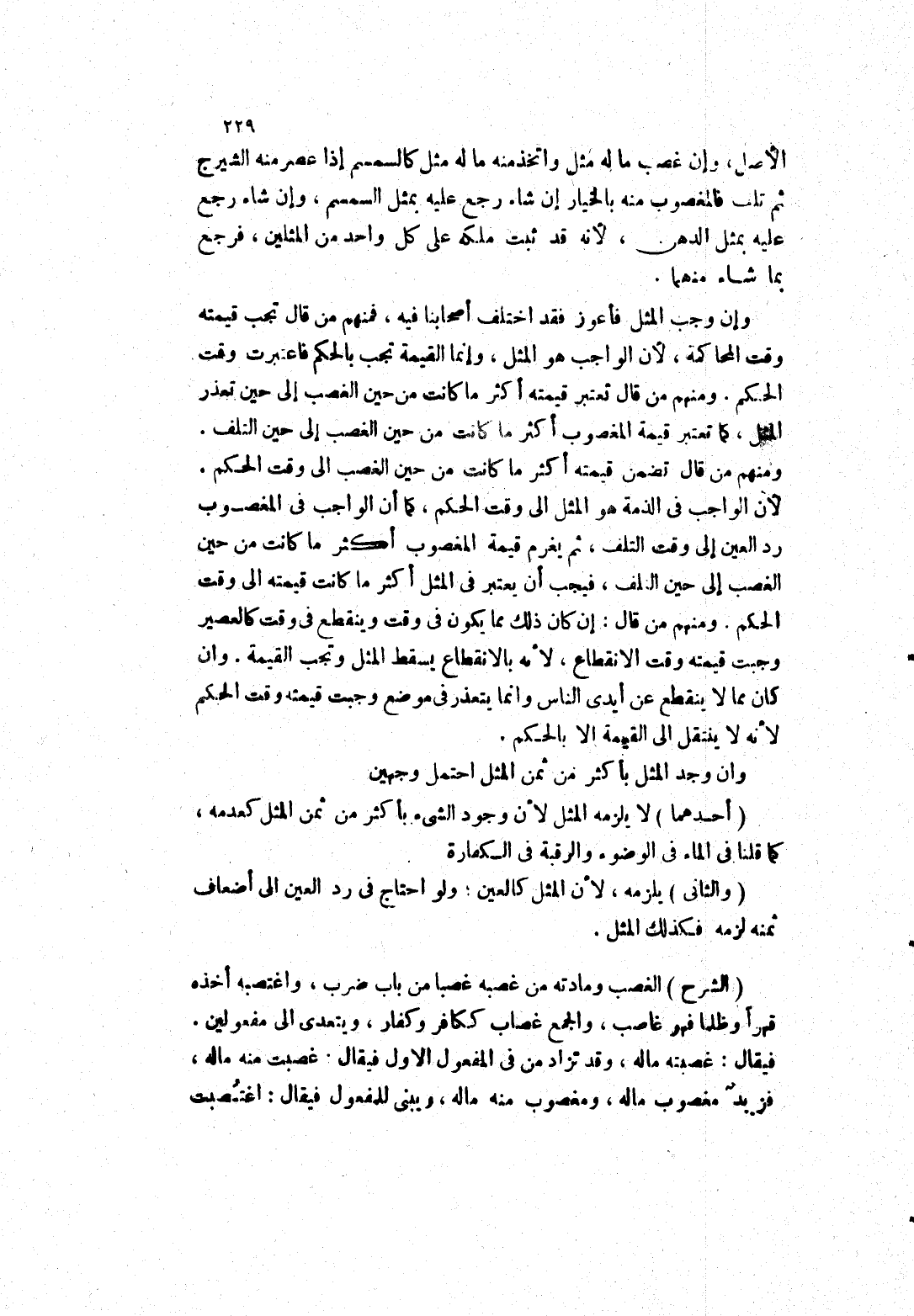 ومنهم من قال تعتبر قيمته أكثر ما كانت من حين الغصب إلى حين تعذر المثل، كما تعتبر قيمة المغصوب أكثر ما كانت من حين الغصب إلى حين التلف.