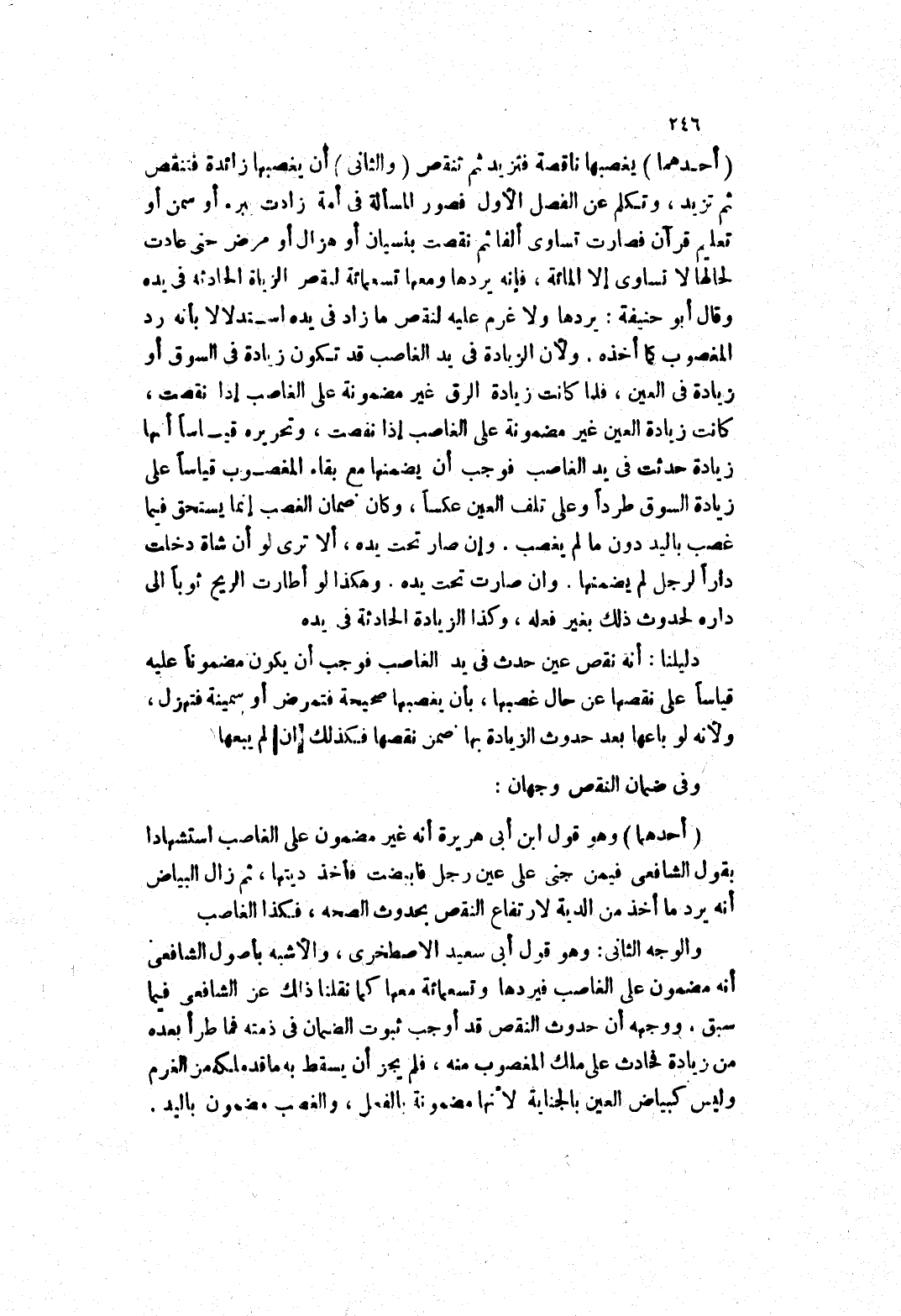 داره لحدوث ذلك بغير فعله، وكذا الزيادة الحادثة في يده دليلنا: أنه نقص عين حدث في يد الغاصب فوجب أن يكون مضمونا عليه قياسا على نقصها عن حال غصبها، بأن يغصبها صحيحة فتمرض أو سمينة فتهزل، ولانه لو باعها بعد حدوث الزيادة بها ضمن نقصها فكذلك ان لم يبعها وفى ضمان النقص وَجْهَانِ: