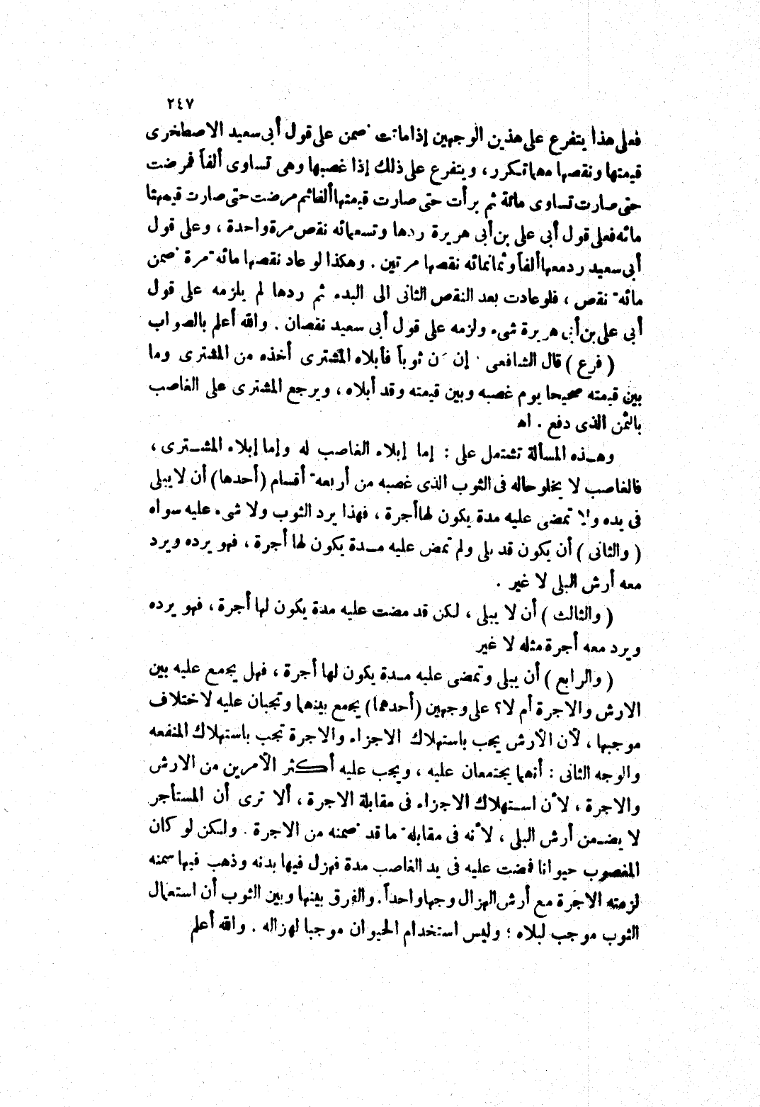 (والثالث) أن لا يبلى، لكن قد مضت عليه مدة يكون لها أجرة، فهو يرده ويرد معه أجرة مثله لا غير (والرابع) أن يبلى وتمضى عليه مدة يكون لها أجرة، فهل يجمع عليه بين الارش والاجرة أم لا؟ على وجهين