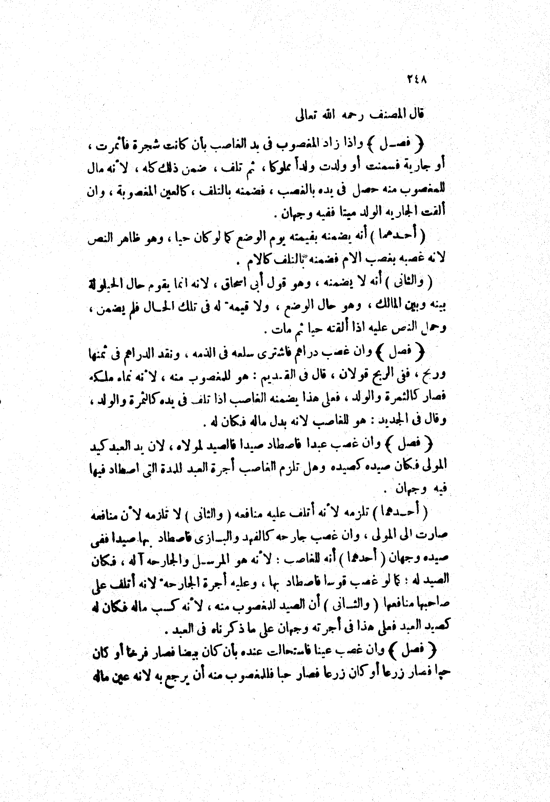 وإذا زاد المغصوب في يد الغاصب بأن كانت شجرة فأثمرت، أو جارية فسمنت أو ولدت ولدا مملوكا، ثم تلف، ضمن ذلك كله، لانه مال