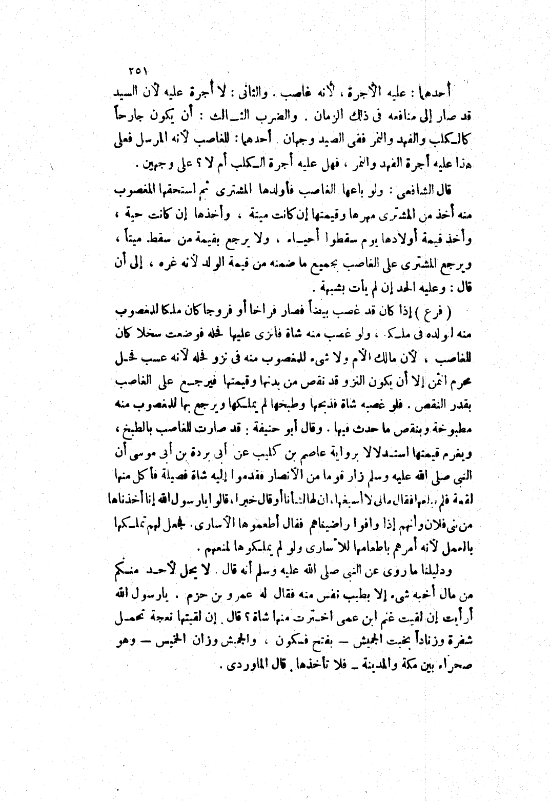 فلو غصبه شاة فذبحها وطبخها لم يملكها ويرجع بها للمغصوب منه مطبوخة وبنقص ما حدث فيها.
