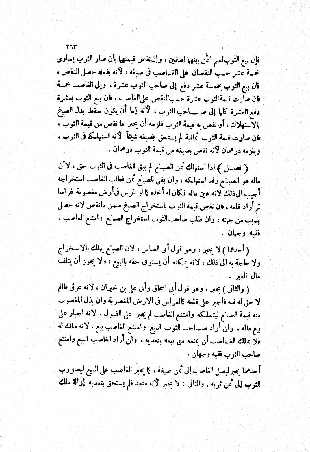 أحدهما يجبر ليصل الغاصب إلى ثمن صبغة، كما يجبر الغاصب على البيع ليصل رب الثوب إلى ثمن ثوبه.