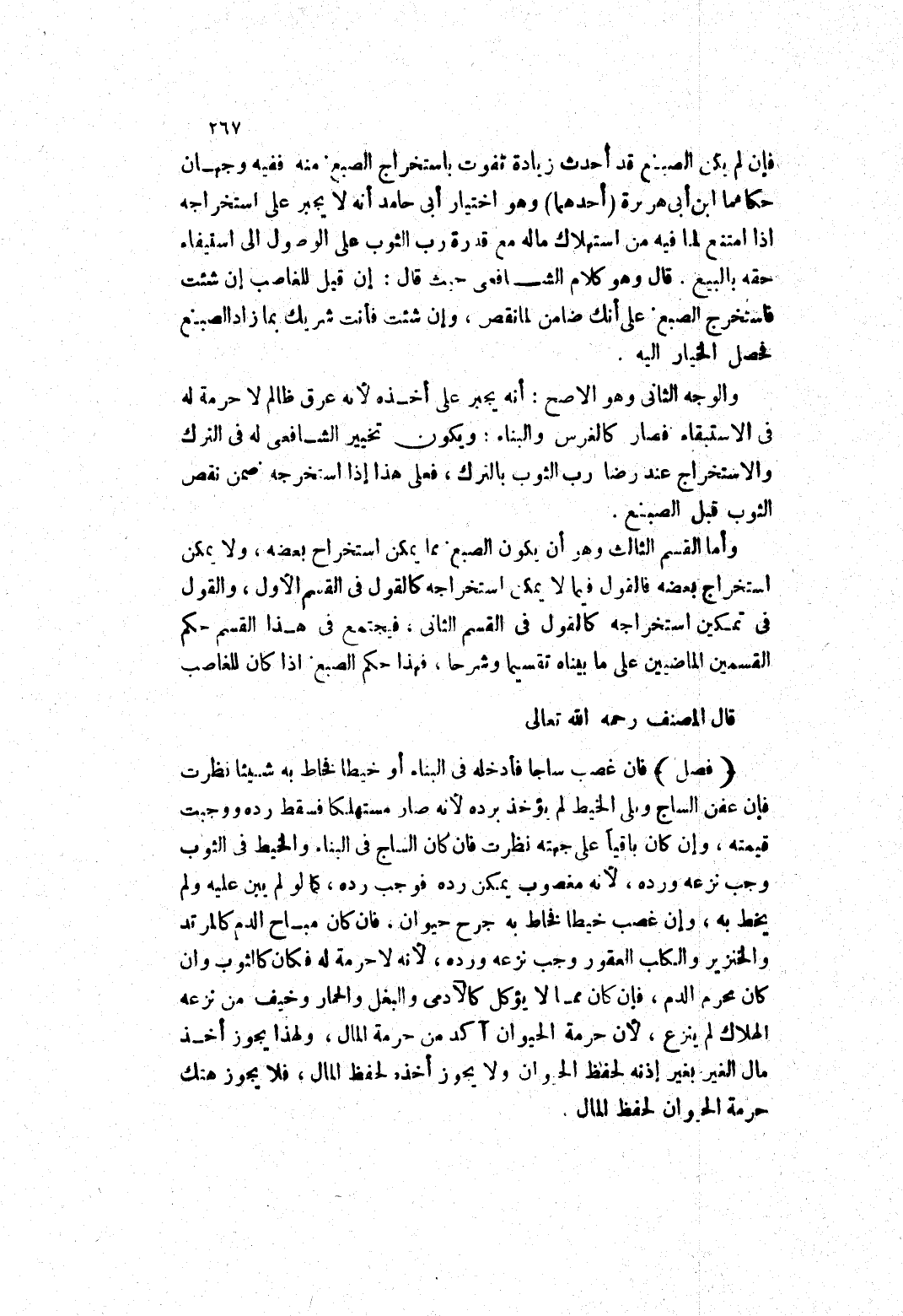 القسمين الماضيين على ما بيناه تقسيما وشرحا، فهذا حكم الصبغ إذا كان للغاصب