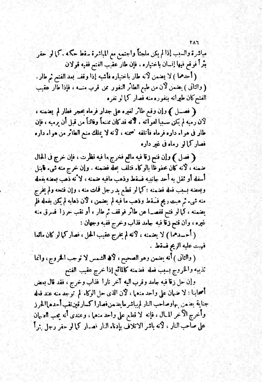 وإن خرج منه شئ فابتل أسفله أو ثقل به أحد جانبيه فسقط وذهب ما فيه ضمنه، لانه ذهب بعضه بفعله وبعضه بسبب فعله فضمنه، كما لو قطع يد رجل فمات منه، وإن فتحه ولم يخرج منه شئ ثم هبت ريح فسقط وذهب ما فيه لم يضمن، لان ذهابه لم يكن بفعله فلم يضمنه، كما لو فتح قفصا عن طائر فوقف ثم طار، أو نقب حرزا فسرق منه غيره، وان قتح زقا فيه جامد فذاب وخرج ففيه وجهان: