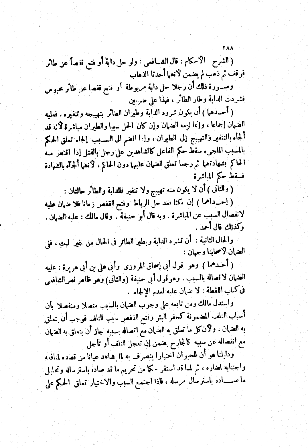 (الشرح) الاحكام: قال الشافعي: ولو حل دابة أو فتح قفصا عن طائر فوقف ثم ذهب لم يضمن لانهما أحدثا الذهاب وصورة ذلك أن رجلا حل دابة مربوطة أو فتح قفصا عن طائر محبوس فشردت الدابة وطار الطائر، فهذا على ضربين