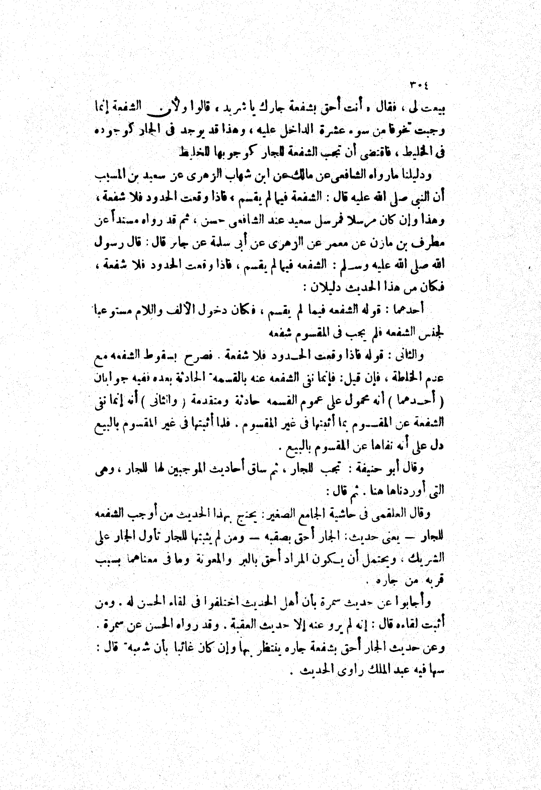 وقال أبو حنيفة: تجب للجار، ثم ساق أحاديث الموجبين لها للجار، وهى التى أوردناها هنا.