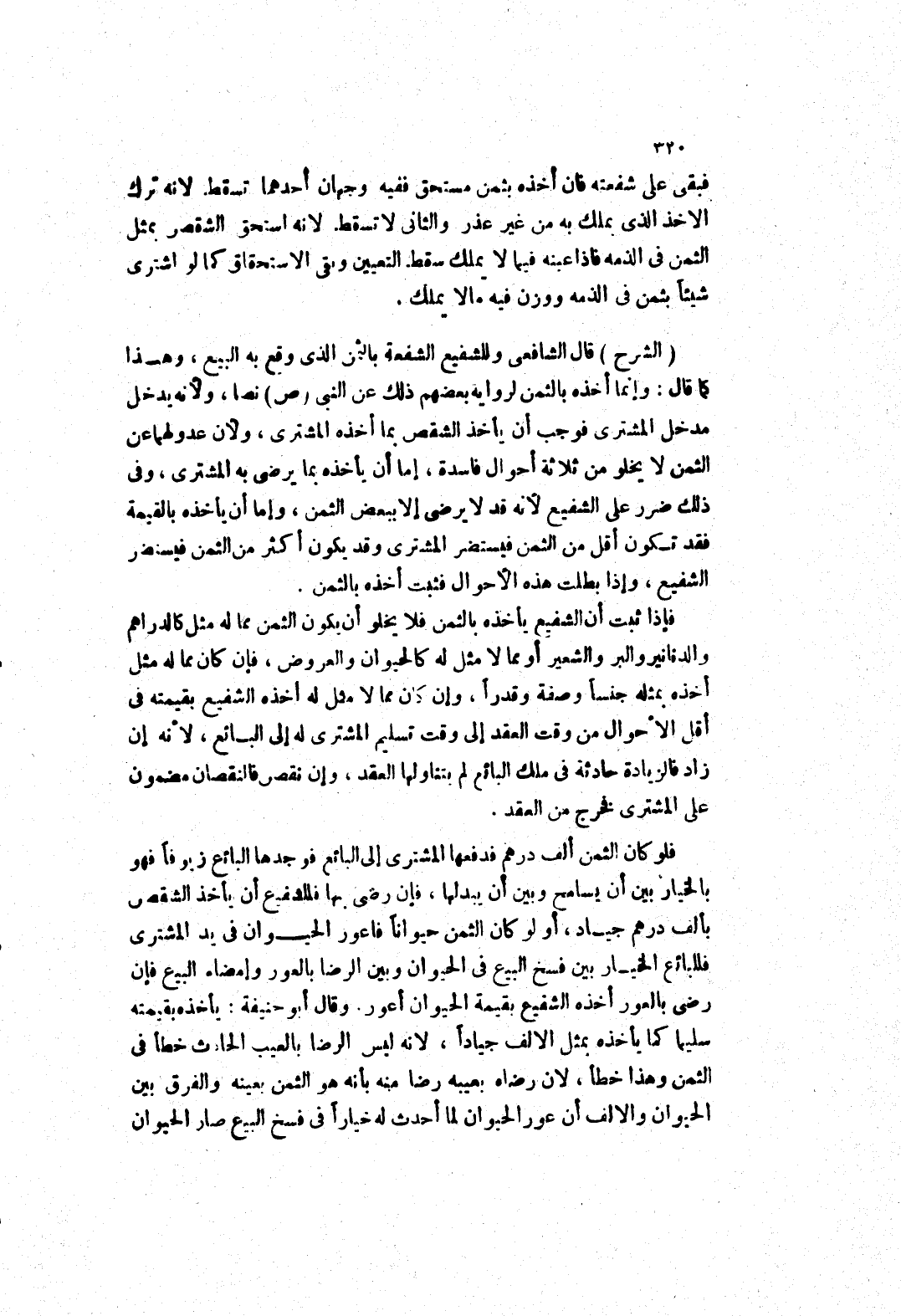 فلو كان الثمن ألف درهم فدفعها المشترى إلى البائع فوجدها البائع زيوفا فهو بالخيار بين أن يسامح وبين أن يبدلها، فإن رضى بها فللشفيع أن يأخذ الشقص بألف درهم جياد، أو لو كان الثمن حيوانا فاعور الحيوان في يد المشترى فللبائع الخيار بين فسخ البيع في الحيوان وبين الرضا بالعور وإمضاء البيع فإن رضى بالعور أخذه الشفيع بقيمة الحيوان أعور.