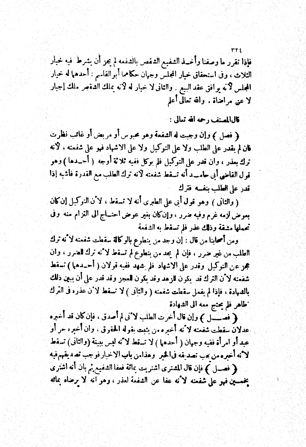 فإذا تقرر ما وصفنا وأخذ الشفيع الشقص بالشفعه لم يجز أن يشرط فيه خيار