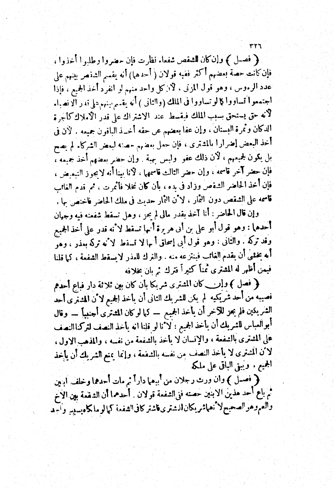وإن كان المشترى شريكا بأن كان بين ثلاثة دار فباع أحدهم نصيبه من أحد شريكيه لم يكن للشريك الثاني أن يأخذ الجميع لان المشترى أحد الشريكين فلم يجز للآخر أن يأخذ الجميع - كما لو كان المشترى أجنبيا - وقال أبو العباس للشريك أن يأخذ الجميع، لانا لو قلنا انه يأخذ النصف لتركنا النصف على المشترى بالشفعة، والانسان لا يأخذ بالشفعة من نفسه، والمذهب الاول، لان المشترى لا يأخذ النصف من نفسه بالشفعة، وإنما يمنع الشريك أن يأخذ الجميع، ويبقى الباقي على ملكه