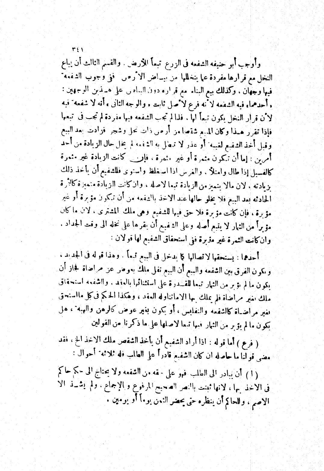 وهذا قوله في الجديد، ويكون الفرق بين الشفعه والبيع أن البيع نقل ملك بعوض عن مراضاة فجاز أن يكون ما لم يؤبر من الثمار تبعا للقدرة على استثنائها بالعقد، والشفعه استحقاق ملك بغير مراضاة فلم يملك بها الا ما تناوله العقد، وهكذا الحكم في كل ما استحق بغير مراضاة كالشفعه والتفليس، أو يكون بغير عوض كالرهن والهبة، هل يكون ما لم يؤبر من الثمار فيها تبعا لاصلها على ما ذكرنا من القولين