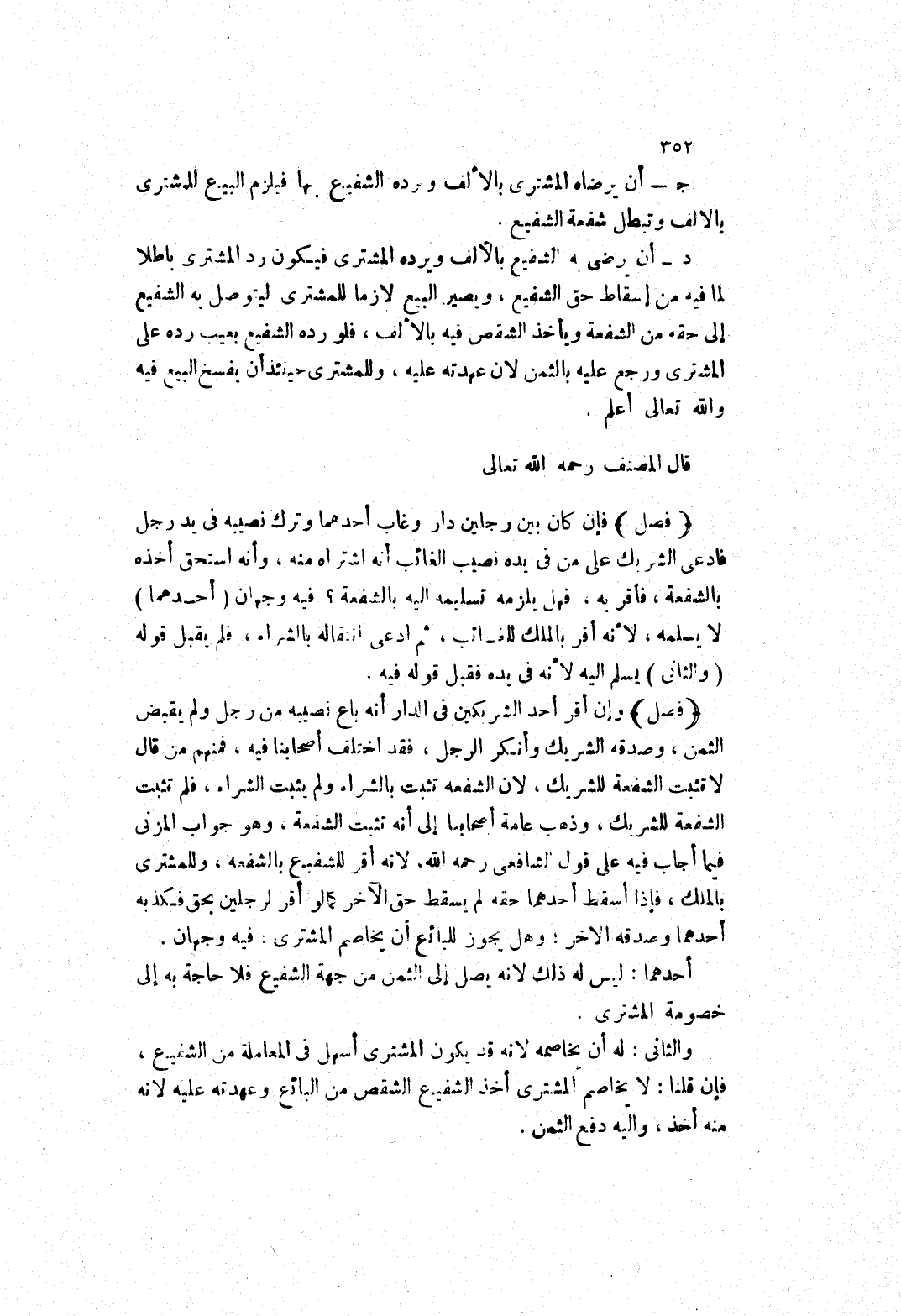 د - أن يرضى به الشفيع بالالف ويرده المشترى فيكون رد المشترى باطلا لما فيه من إسقاط حق الشفيع، ويصير البيع لازما للمشترى ليتوصل به الشفيع إلى حقه من الشفعة ويأخذ الشقص فيه بالالف، فلو رده الشفيع بعيب رده على المشترى ورجع عليه بالثمن لان عهدته عليه، وللمشترى حينئذ أن يفسخ البيع فيه وَاَللَّهُ تَعَالَى أَعْلَمُ.