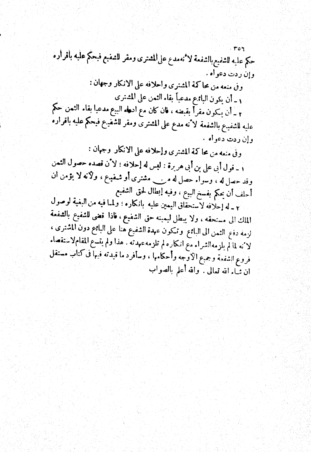 هذا ولم يتسع المقام لاستقصاء فروع الشفعة وجميع الاوجه وأحكامها، وسأفرد ما قيدته فيها في كتاب مستقل ان شاء الله تعالى.