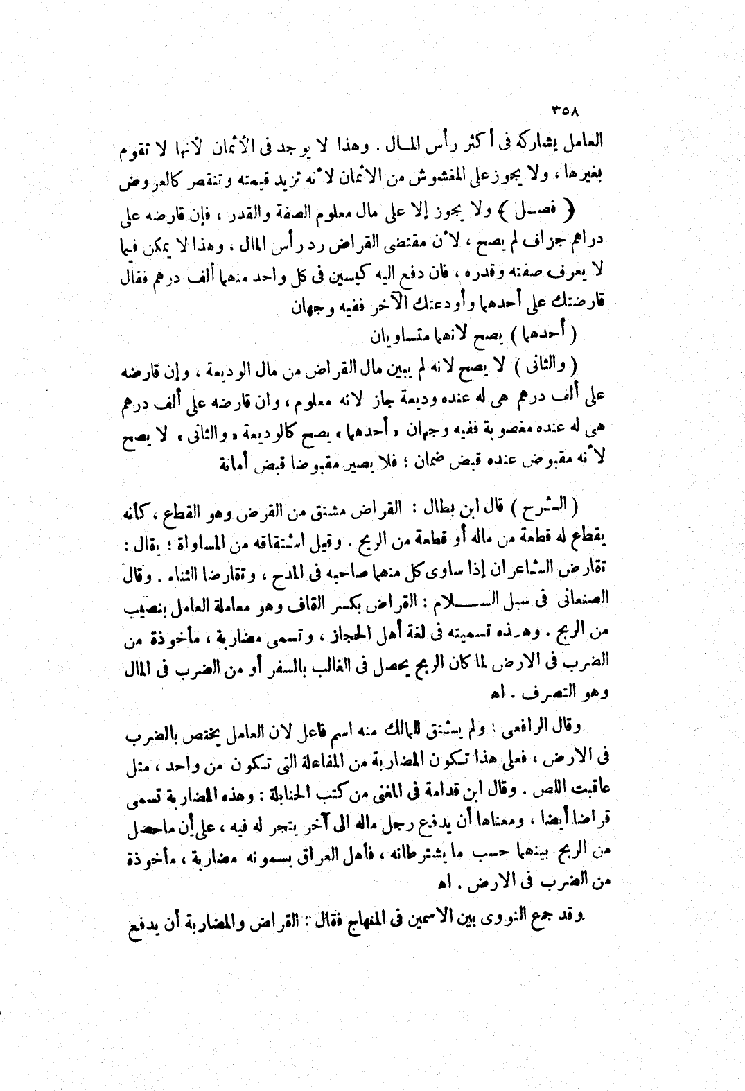 اه وقد جمع النووي بين الاسمين في المنهاج فقال: القراض والمضاربة أن يدفع