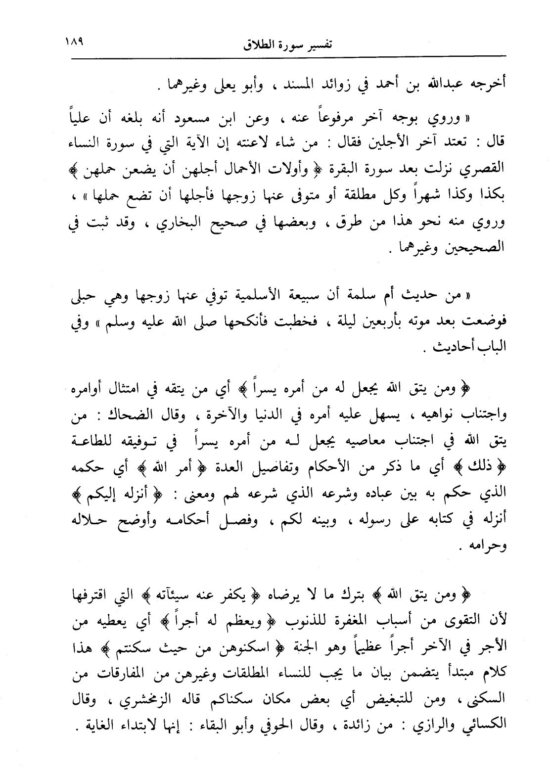 " وروي بوجه آخر مرفوعاً عنه، وعن ابن مسعود أنه بلغه أن علياً قال: تعتد آخر الأجلين فقال: من شاء لاعنته إن الآية التي في سورة النساء القصري نزلت بعد سورة البقرة (وأولات الأحمال أجلهن أن يضعن حملهن) بكذا وكذا شهراً وكل مطلقة أو متوفى عنها زوجها فأجلها أن تضع حملها "، وروي منه نحو هذا من طرق، وبعضها في صحيح البخاري، وقد ثبت في الصحيحين وغيرهما.