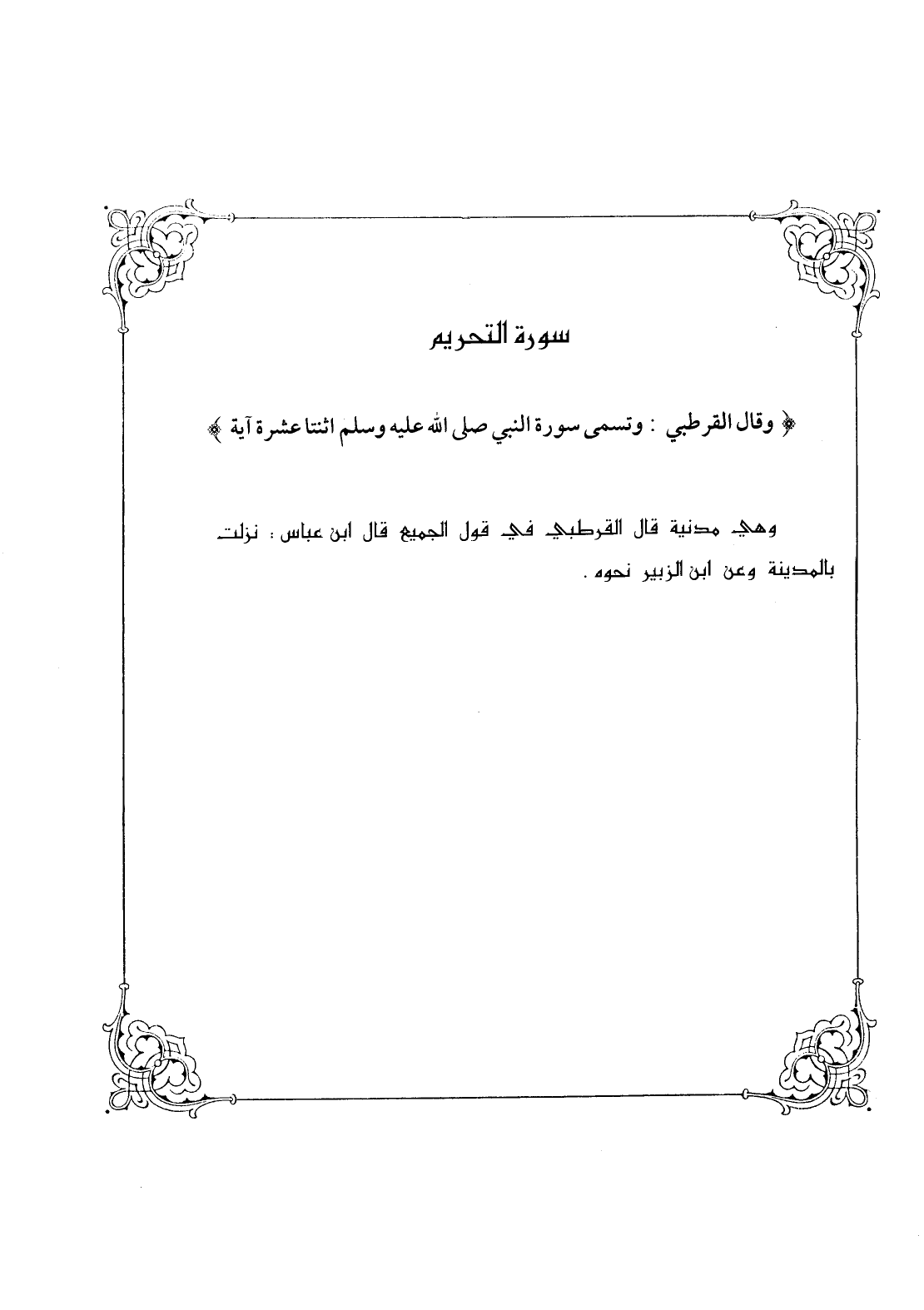 (وقال القرطبي: وتسمى سورة النبي صلى الله عليه وسلم، اثنتا عشرة آية)