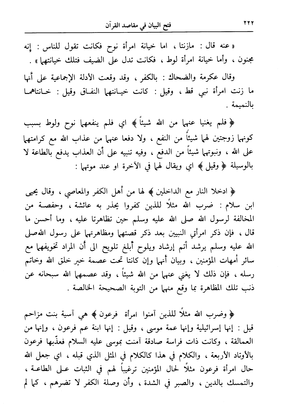 " عنه قال: مازنتا، أما خيانة امرأة نوح فكانت تقول للناس: إنه مجنون، وأما خيانة امرأة لوط، فكانت تدل على الضيف فتلك خيانتهما ".