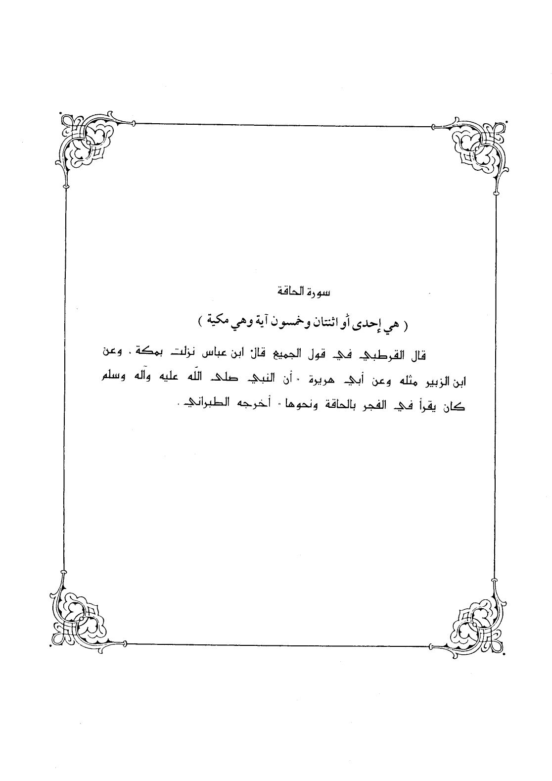 قال القرطبي في قول الجميع قال ابن عباس نزلت بمكة، وعن ابن الزبير مثله وعن أبي هريرة " أن النبي - صلى الله عليه وسلم - كان يقرأ في الفجر بالحاقة ونحوها " أخرجه الطبراني.