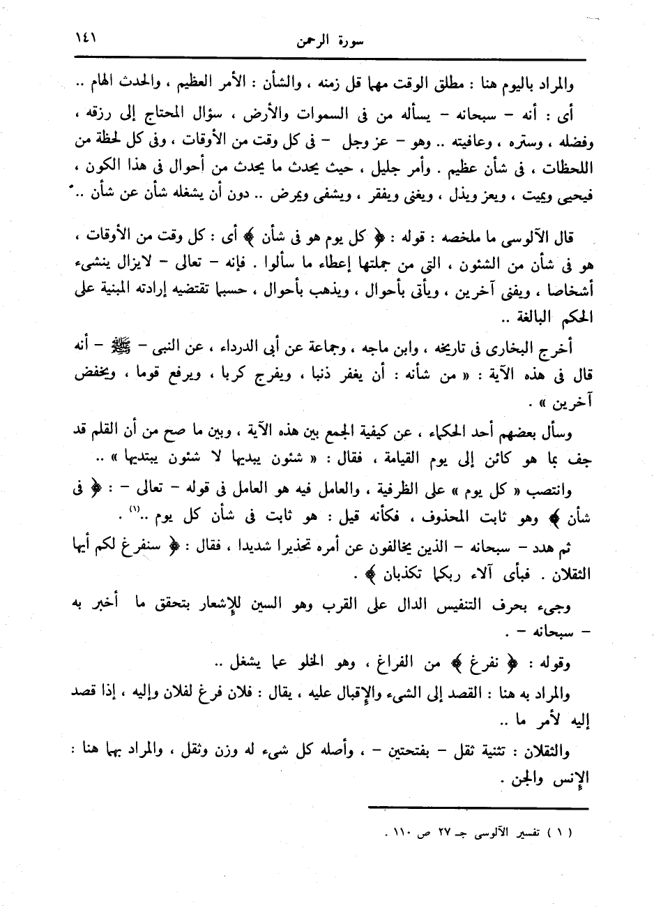 (1) تفسير الآلوسى ج 27 ص 110.