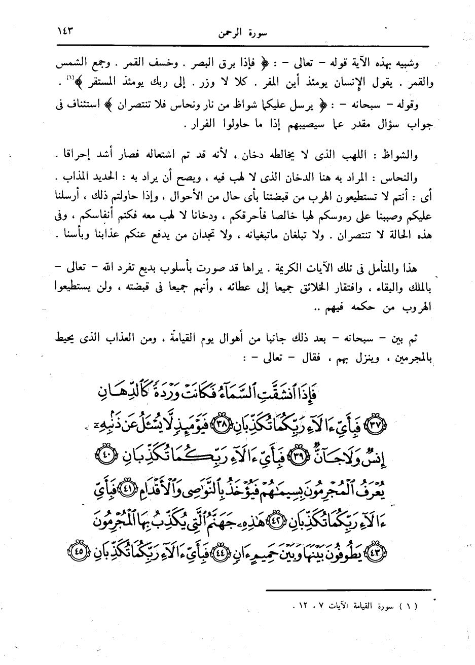 وقوله- سبحانه-: يُرْسَلُ عَلَيْكُما شُواظٌ مِنْ نارٍ وَنُحاسٌ فَلا تَنْتَصِرانِ استئناف في جواب سؤال مقدر عما سيصيبهم إذا ما حاولوا الفرار.