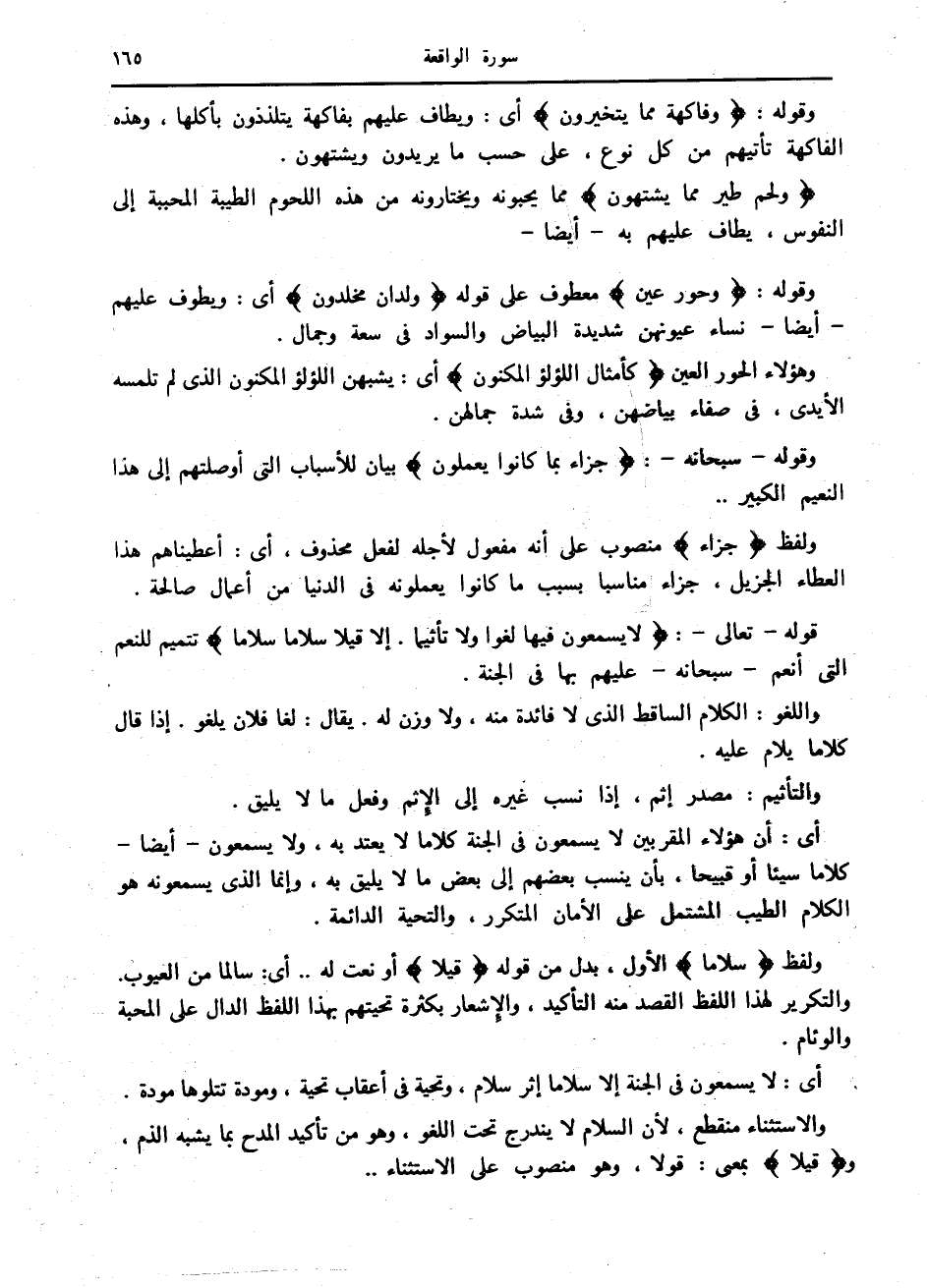 والاستثناء منقطع، لأن السلام لا يندرج تحت اللغو، وهو من تأكيد المدح بما يشبه الذم، وقِيلًا بمعنى: قولا، وهو منصوب على الاستثناء..