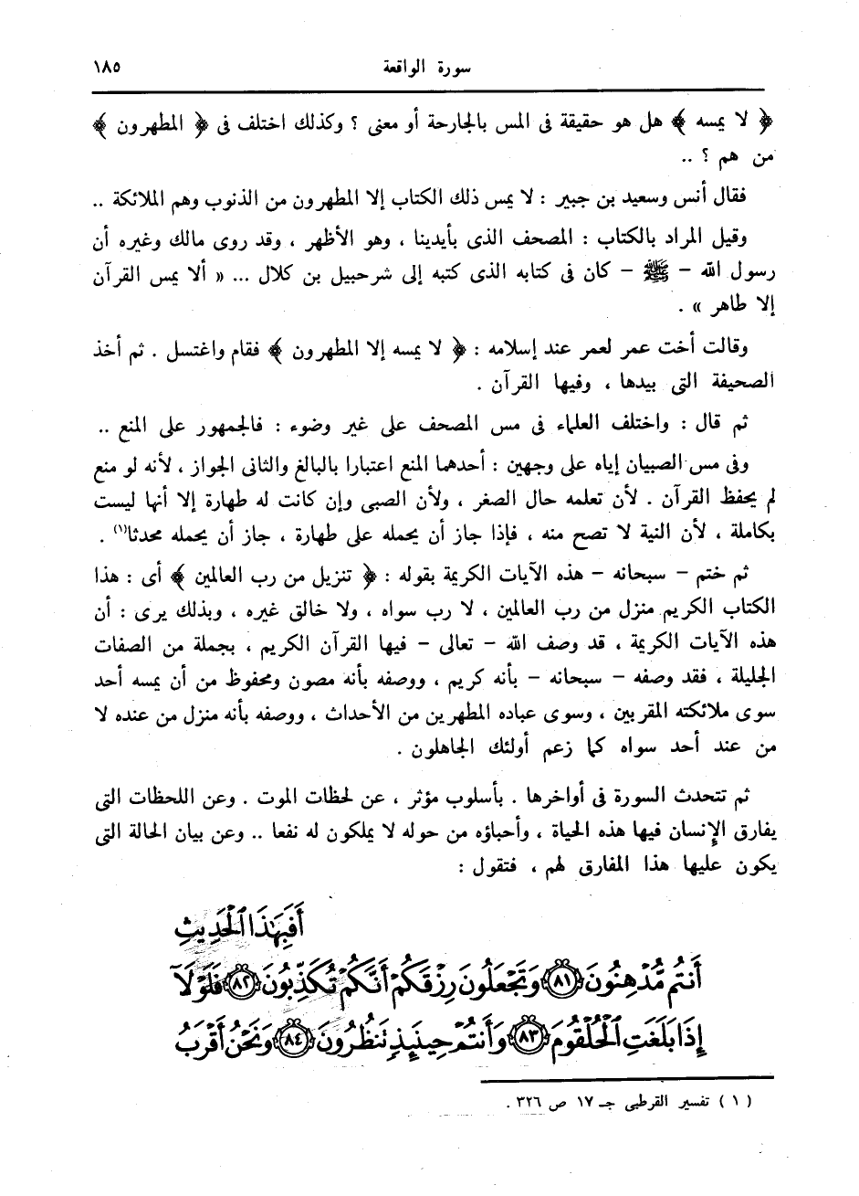 لا يَمَسُّهُ هل هو حقيقة في المس بالجارحة أو معنى؟ وكذلك اختلف في الْمُطَهَّرُونَ من هم؟ ..