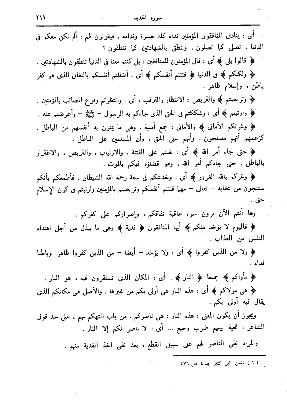 (1) تفسير ابن كثير ج 4 ص 476.